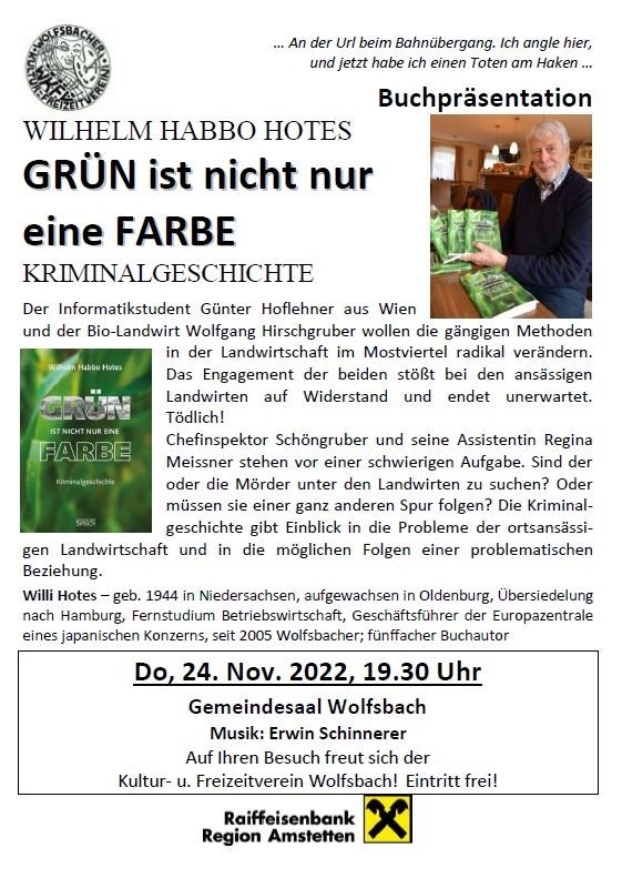 WIlhelm Habbo Hotes liest am Donnerstag, dem 24.11.2022 um 19:30 Uhr aus seiner neuen Kriminalgeschichte